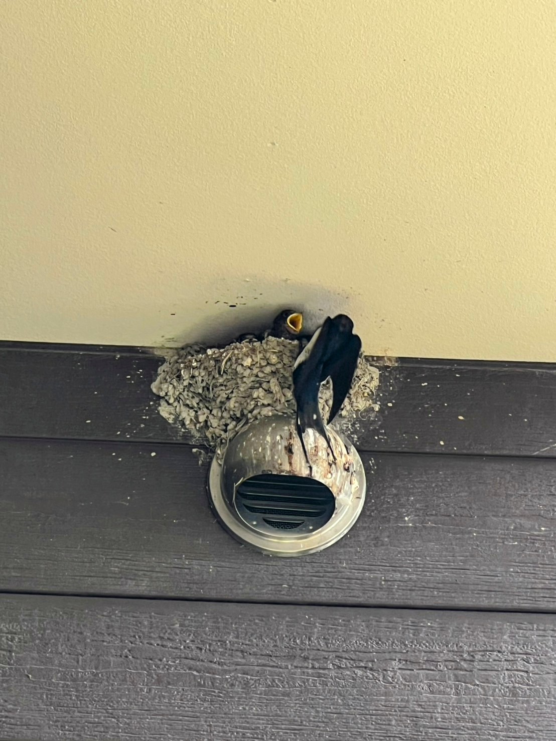 親ツバメは大変です。お腹を減らした4羽のツバメに
