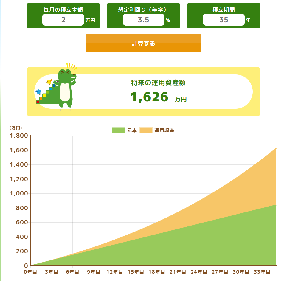 出典 金融庁つみたてシミュレーター:fsa.go.jp/policy/nisa2/tsumitate-simulator/