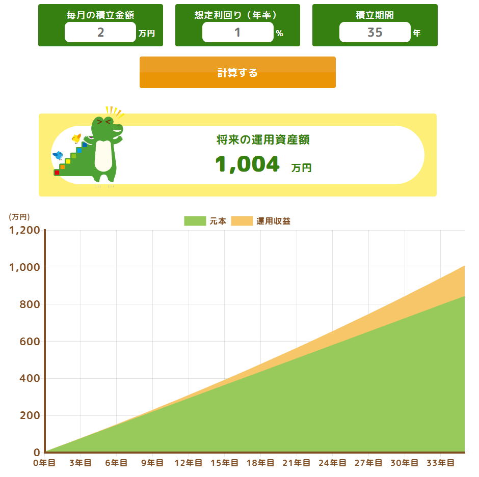 低い利回りで計算しても、大きな額になります。まさに、塵も積もれば山となるですね。